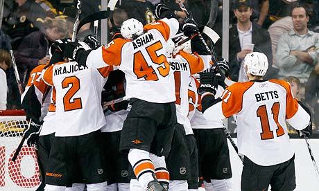 makeup Savard#39;s OT Goal - Boston Bruins vs. Philadelphia Flyers 05/01/2010